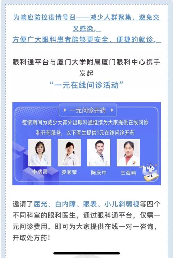 在廈門(mén)眼科中心斜視與小兒眼科專(zhuān)科診室,潘美華教授:“這個(gè)疫情期的寒假,孩子們只能宅在家里,一定要注意孩子眼部衛(wèi)生與健康。要注意觀察孩子是否出現(xiàn)頻繁眨眼、揉眼睛、眼紅、眼痛、畏光流淚等異常情況,不要亂用眼藥水,應(yīng)及時(shí)網(wǎng)上求醫(yī)詢(xún)?cè)\,必要時(shí)預(yù)約醫(yī)生來(lái)院就診。”作為廈門(mén)眼科中心第1黨支部書(shū)記,潘美華教授始終在一線(xiàn)詮釋一名支部書(shū)記的責(zé)任與擔(dān)當(dāng)。